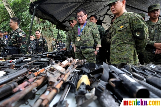 Berita Internasional - Duterte memeriksa senjata api saat mendatangi pasukan militernya di Marawi.